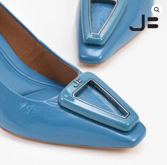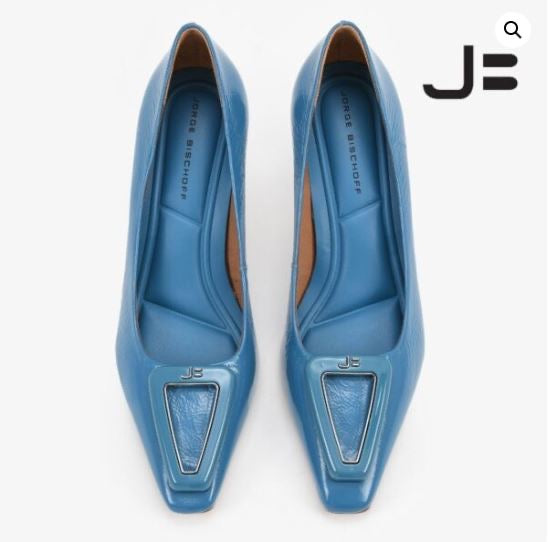 The Crinkle Marine Pump by Jorge Bischoff redefines the classic stiletto with a touch of contemporary artistry. Its glossy crinkle-textured leather and refined marine-blue tone bring subtle sophistication, while the signature geometric ornament at the toe adds an unmistakable Bischoff identity.