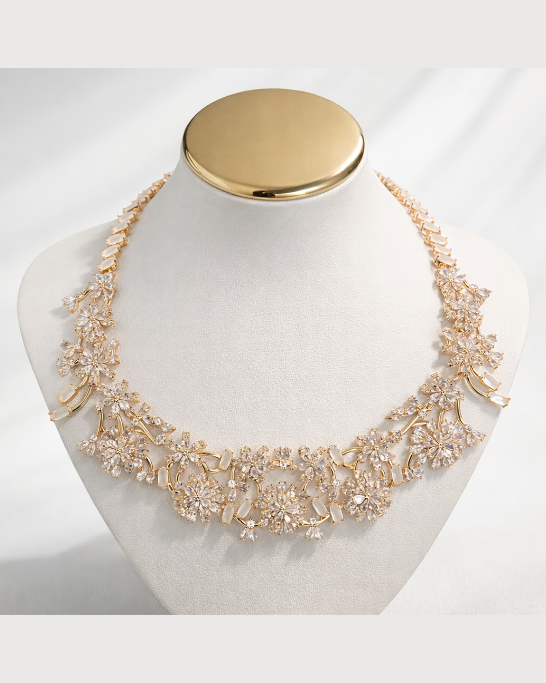 The Eirene Botanique Set is an expression of sculptural jewelry, where natural stones are transformed into a refined botanical composition of rare complexity. Handcrafted in Brazil, each element is individually set to create depth, symmetry, and a dimensional presence that unfolds across the neckline and ears. The necklace forms a striking centerpiece, while the earrings mirror its architecture in an elegant cascade, resulting in a set that feels intentional, balanced, and unmistakably elevated. Designed as a statement acquisition rather than an accessory, Eirene Botanique is created for women who value craftsmanship, artistry, and pieces that stand apart in both design and permanence.