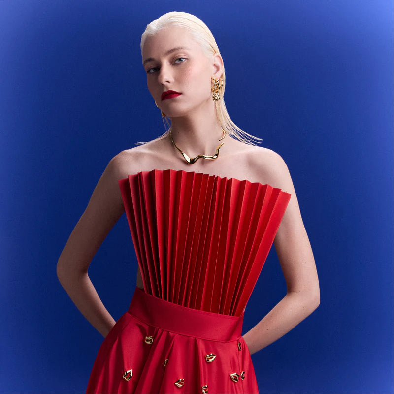 Where sculptural form meets modern femininity. The Emilia Choker by Anna Prata, from the Babado Collection, is a striking statement piece that plays with fluid lines and dramatic curves. Crafted to sit beautifully along the neckline, it’s available in high-shine gold or silver finishes, each one evoking effortless elegance and bold sophistication.