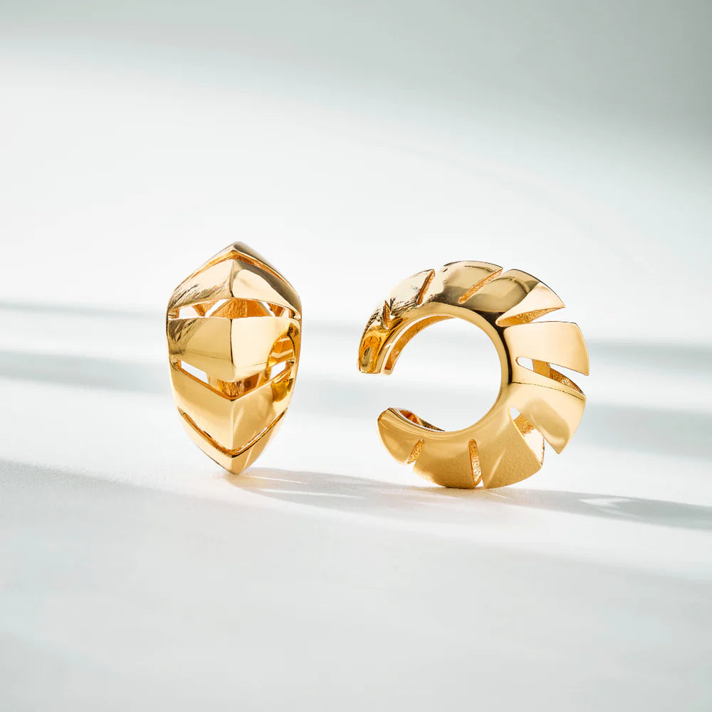 Sculptural and bold, the Ivy Piercing from Anna Prata’s Jaguar Collection redefines elegance with its distinctive, armor-inspired design. Though worn like an earring, its open-back structure offers the edgy appeal of a piercing without requiring one. Available in both gold and silver finishes, it’s a modern statement piece that adds character and strength to any look, perfect for those who embrace fearless style with a refined touch.