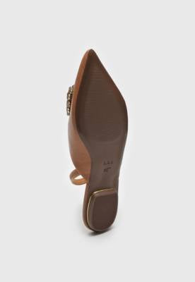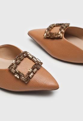 The Amber Buckle Flat by Jorge Bischoff blends everyday comfort with a touch of glamour. Crafted in textured camel-toned leather with a sleek pointed toe, this slingback flat is elevated by a bold, jewel-encrusted amber buckle that catches the light with every step. The low-profile silhouette makes it versatile for both daywear and evening outings, while the slingback strap ensures a secure and flattering fit. Perfect for those who want chic sophistication without sacrificing comfort.