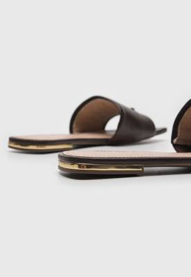 Elevate your everyday style with the Milano Slide by Jorge Bischoff. Crafted in supple brown leather, this sandal features a minimalist silhouette enhanced by the iconic JB gold hardware and a refined square toe. The flat sole includes subtle gold detailing, adding a touch of modern elegance to this versatile design.