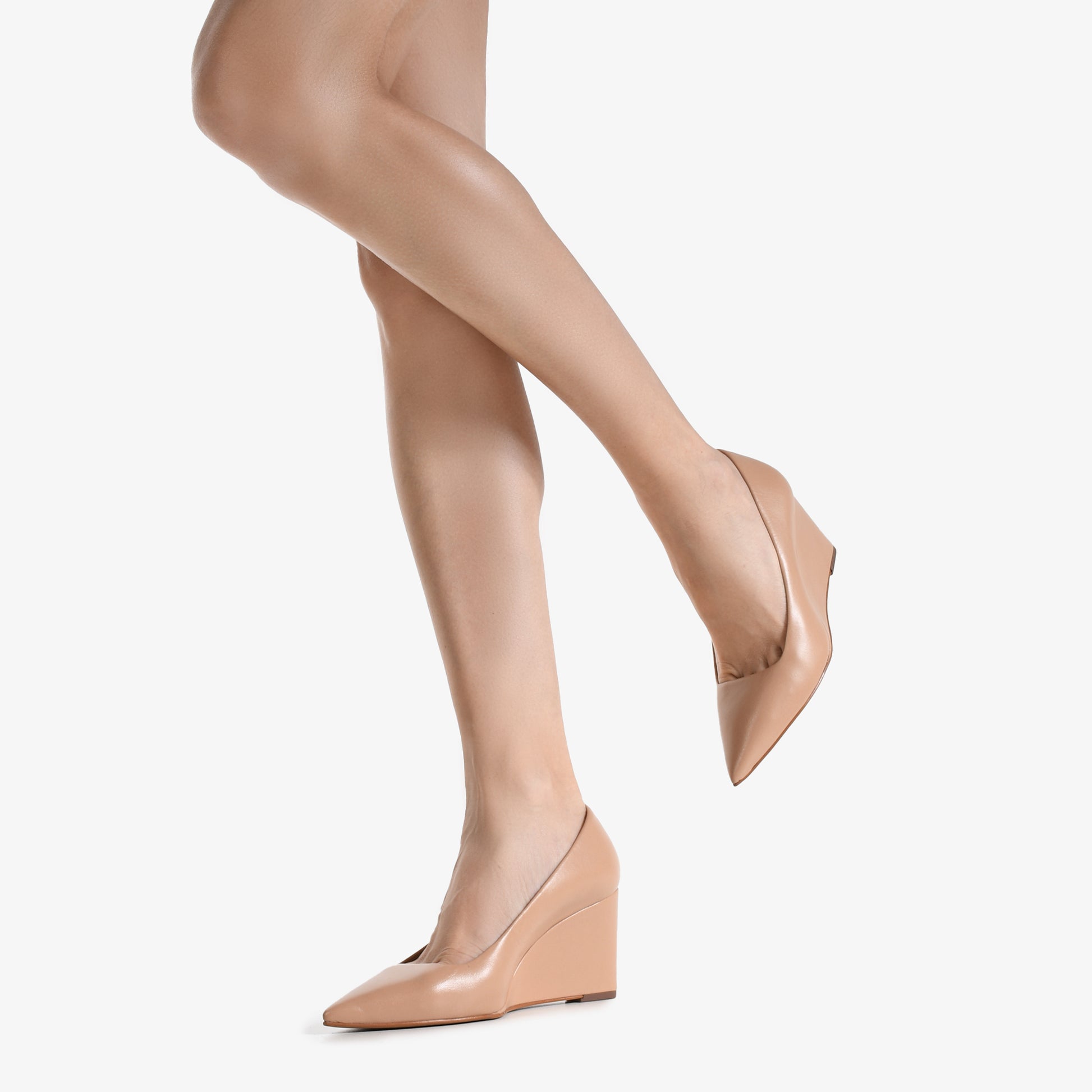 Effortless polish meets everyday ease in the Eden Wedge by Loucos & Santos. Crafted in smooth nude leather with a sculpted silhouette, this minimalist pump offers a modern take on the classic wedge. The pointed toe adds a refined touch, while the covered wedge heel delivers all-day stability without sacrificing style. A versatile neutral that moves seamlessly from office to after hours.