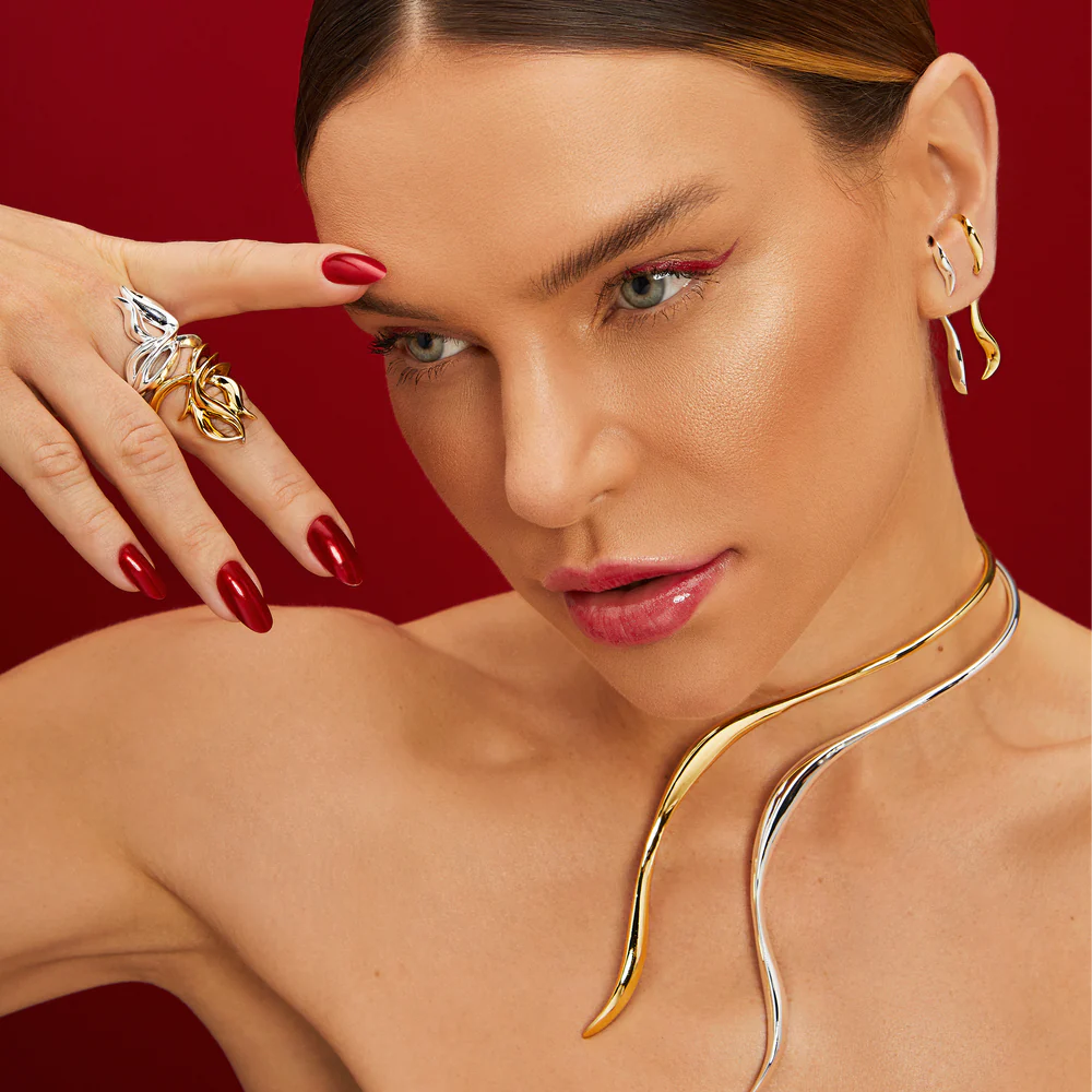 A signature statement of minimalism and movement, the Lume Choker is a sculptural piece that evokes fluidity with its sinuous silhouette. Crafted in a striking open-front design, this choker gracefully hugs the neckline and flows downward with a dramatic curve that elongates and elevates any look. Available in radiant gold or polished silver, it’s the perfect piece to wear solo or layered for a modern, luminous edge. Part of Anna Prata’s Essential Collection, where elegance meets expression.