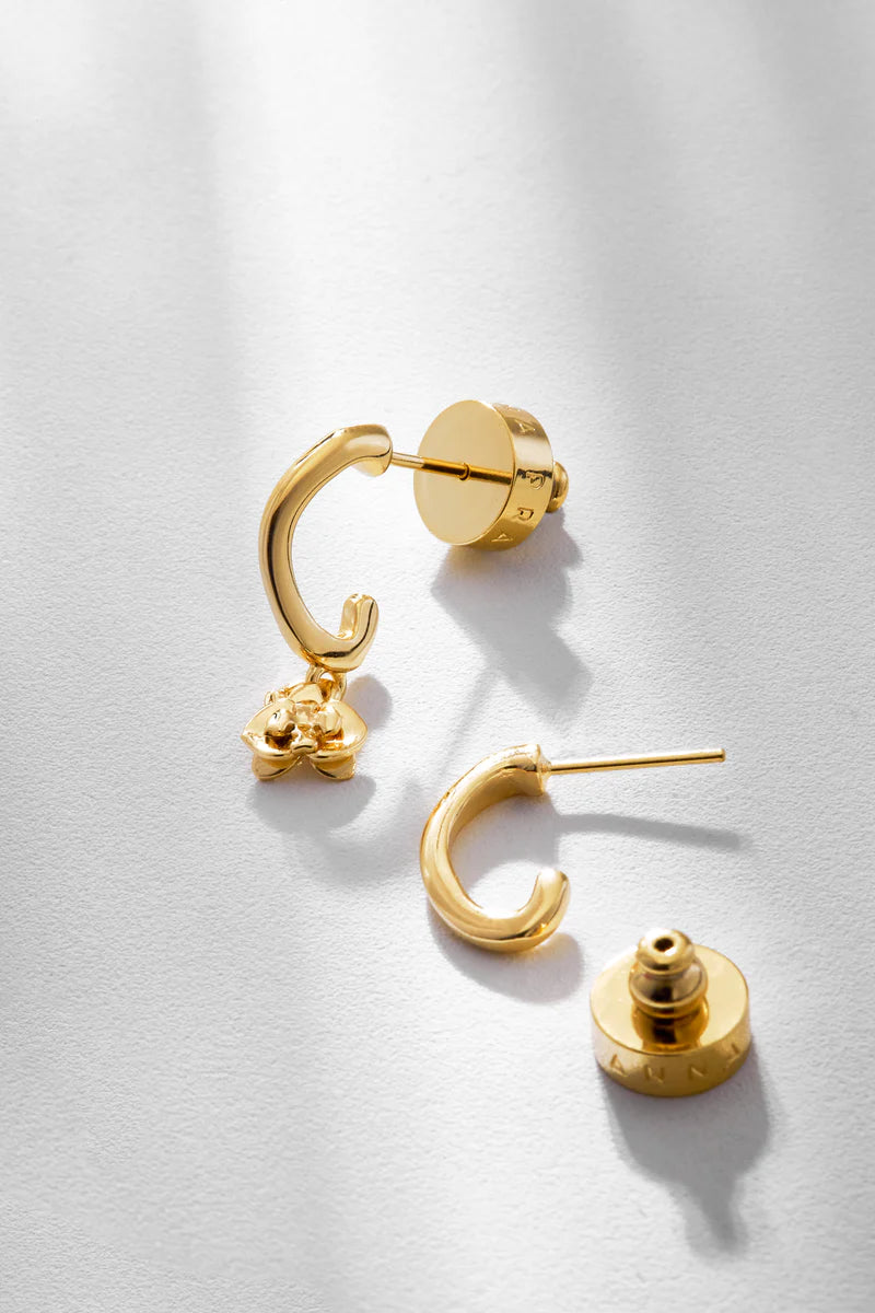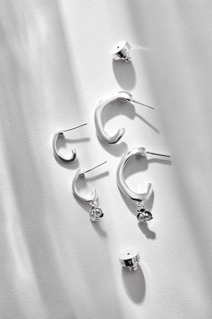 Sculptural and subtly bold, the Orla S Hoop is the small-yet-striking version of our signature Orla. With its fluid shape and removable floral charm, it gives you styling freedom, wear it as a clean hoop for everyday simplicity, or add the charm for a hint of movement and personality.