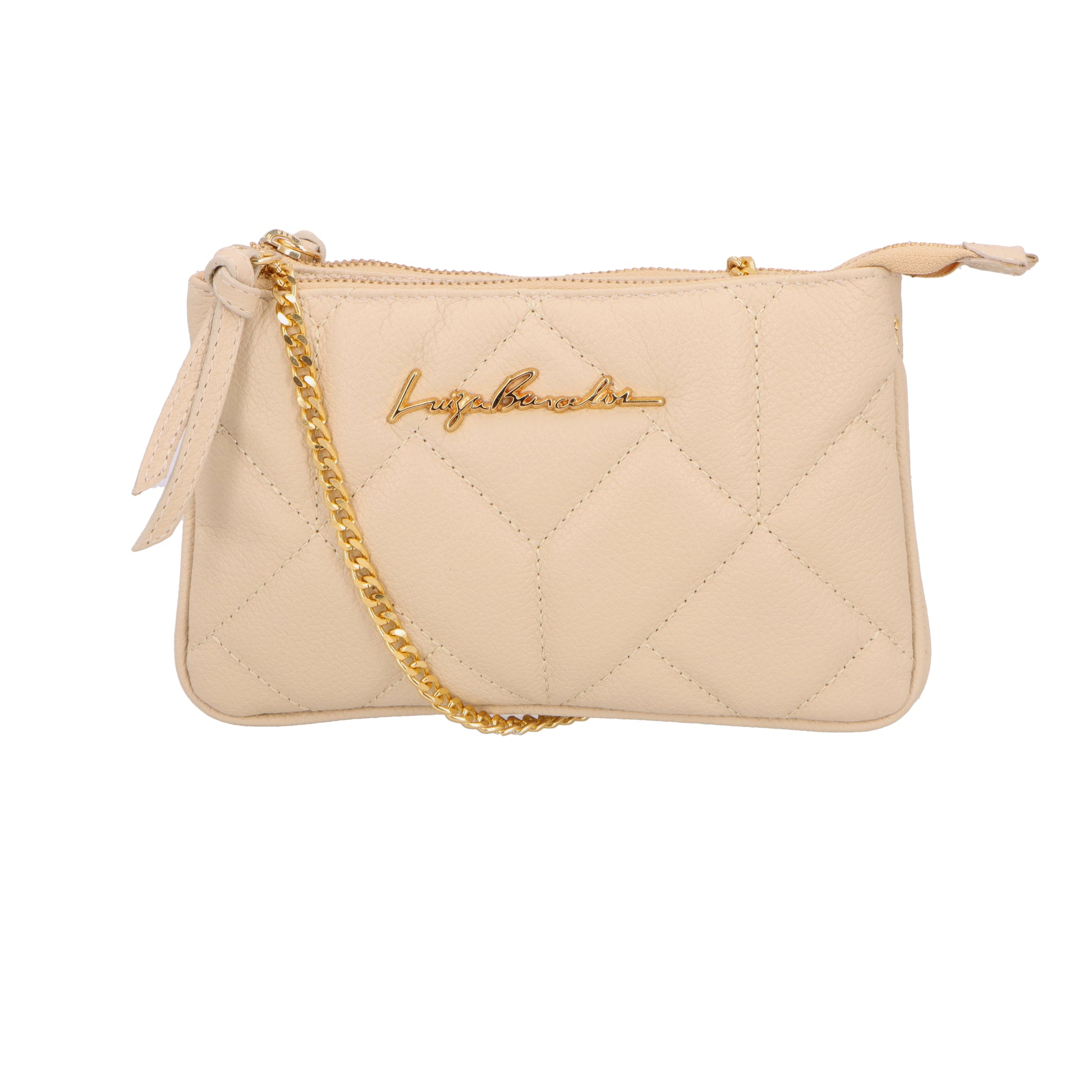 Refined and versatile, the Quilt Chain Crossbody by Luiza Barcelos is crafted in Brazil from soft, premium leather with a classic quilted finish. The compact silhouette is elevated by a delicate gold-tone chain strap that transitions effortlessly from day to evening. Finished with a secure zip closure and polished hardware, this piece delivers understated elegance with everyday practicality. A timeless essential designed for modern styling.