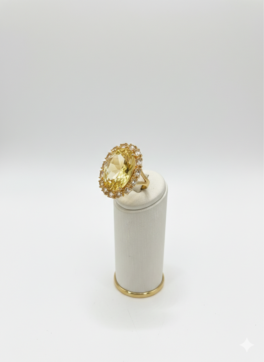 Sculptural and commanding, the Regalis Ring is designed to be the focal point of any look. Handcrafted with a faceted natural stone, its generous oval silhouette is framed by delicate detailing that enhances depth, light, and presence without feeling excessive. The design balances boldness with refinement, reflecting Herreira’s signature approach to statement jewelry rooted in craftsmanship and artistry. Part of a coordinated set, the Regalis Ring pairs seamlessly with the matching necklace and earrings, each sold separately for versatile styling.