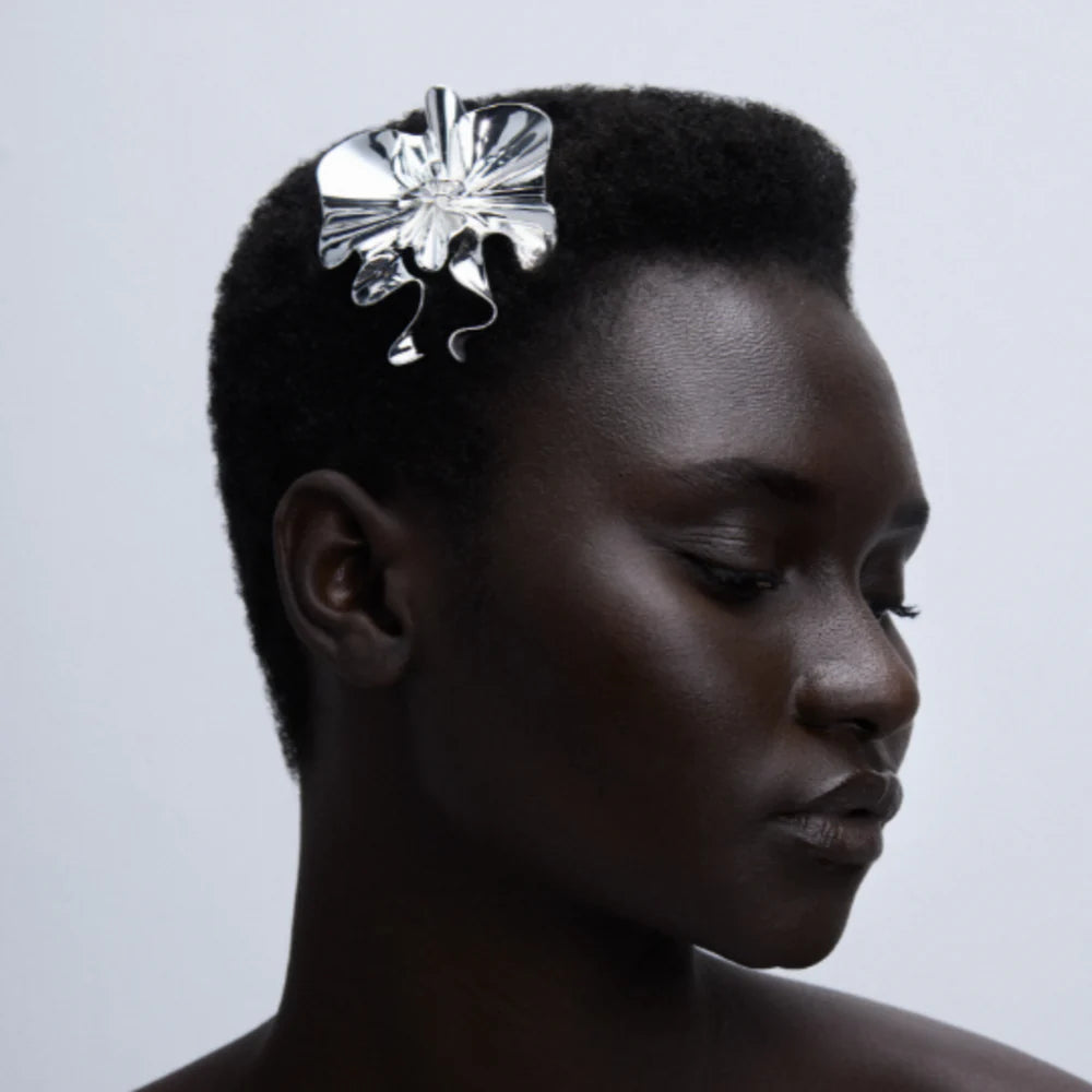 Available in both 18k gold plating and silver, the brooch can be worn as a striking hair accessory, a bold lapel piece, or paired with a velvet ribbon as a choker. It perfectly complements the other Thathyana pieces in the collection, allowing you to curate a cohesive and impactful look.