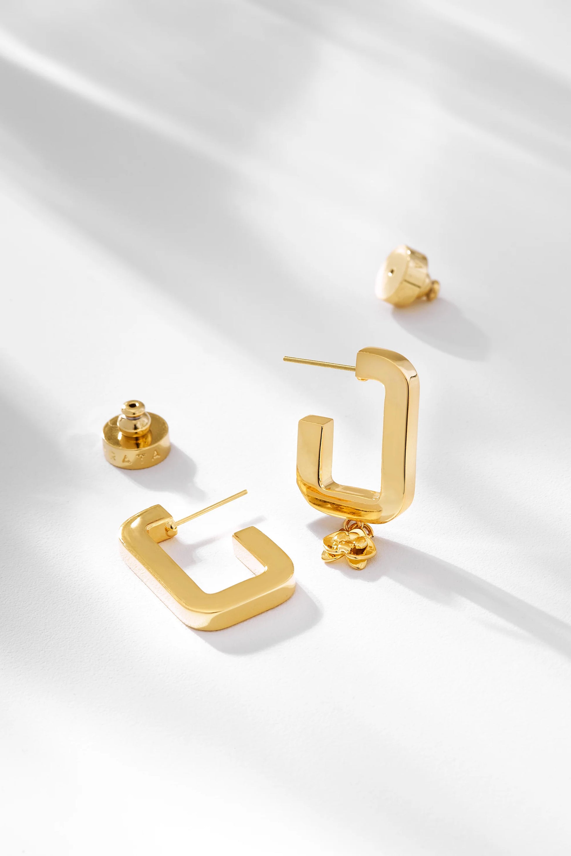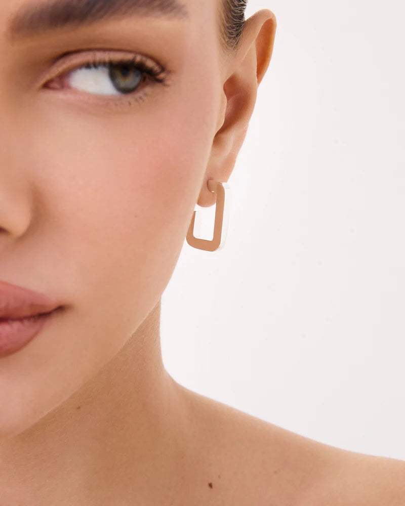 Modern elegance, in its most versatile form. The Traco S Earring is the smaller version of the signature Traco style, crafted with clean lines, geometric balance, and a bold silhouette that speaks softly. Available in both gold and silver finishes, each pair includes a detachable charm that lets you shift from sculptural minimalism to an unexpected touch of movement.